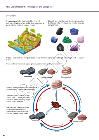 The geosphere is the solid part of Earth, which Minerals are naturally occurring, inorganic solids