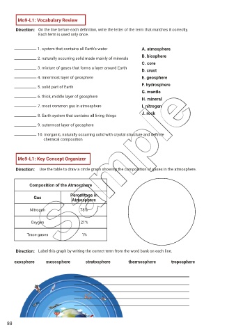 Direction: Use the table to draw a circle graph showing the composition of gases in the atmosphere.