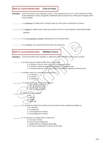 2. A mixture is matter that is made up of atoms of two or more elements chemically bonded