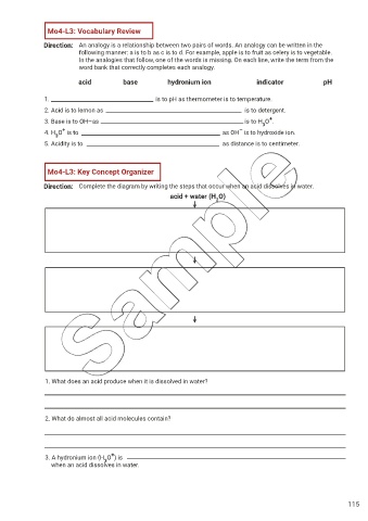 Direction: Complete the diagram by writing the steps that occur when an acid dissolves in water.