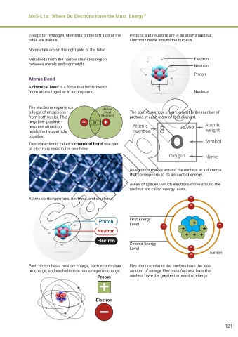 Each proton has a positive charge; each neutron has Electrons closest to the nucleus have the least