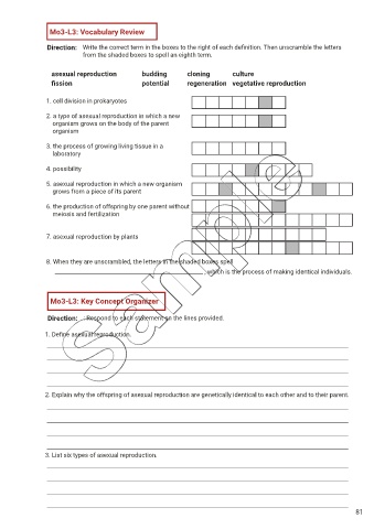 Direction: Write the correct term in the boxes to the right of each definition. Then unscramble the letters