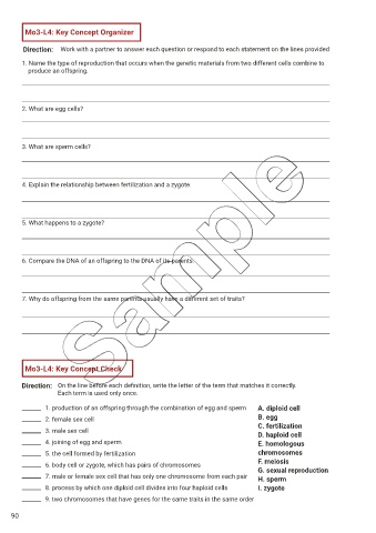 7. male or female sex cell that has only one chromosome from each pair H. sperm