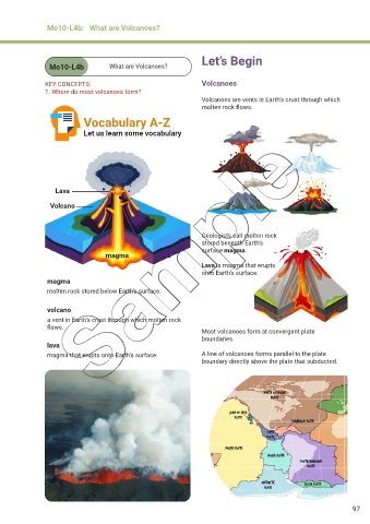 magma that erupts onto Earth’s surface. A line of volcanoes forms parallel to the plate