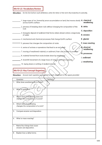 5. process that changes the composition of rocks F. mass wasting