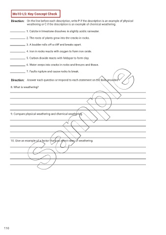 1. Calcite in limestone dissolves in slightly acidic rainwater.