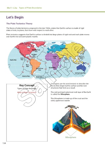 Plate tectonics suggests that Earth’s surface is divided into large plates of rigid rock and each plate moves