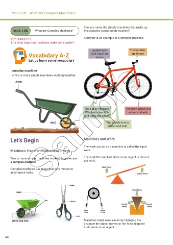 KEY CONCEPTS: A bicycle is an example of a complex machine.