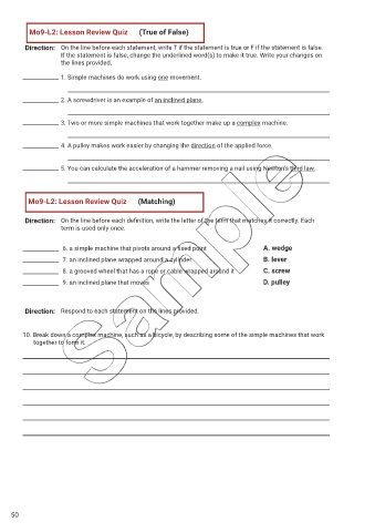 10. Break down a complex machine, such as a bicycle, by describing some of the simple machines that work