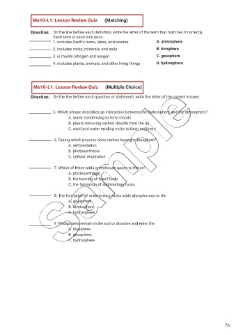 1. includes Earth’s rivers, lakes, and oceans A. atmosphere