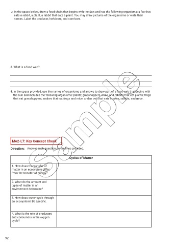 2. In the space below, draw a food chain that begins with the Sun and has the following organisms: a fox that