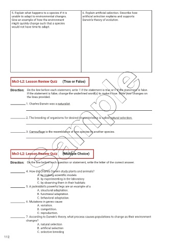 5. Explain what happens to a species if it is 6. Explain artificial selection. Describe how