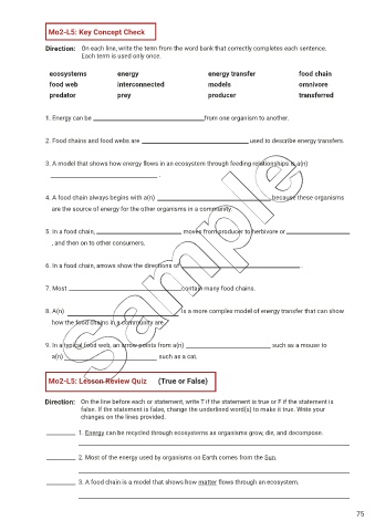 3. A food chain is a model that shows how matter flows through an ecosystem.