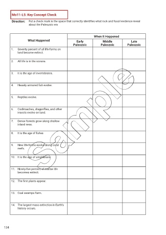 Direction: Put a check mark in the space that correctly identif es what rock and fossil evidence reveal