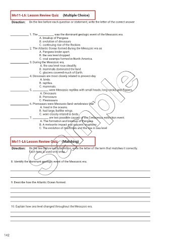 5. ____________ were Mesozoic reptiles with small heads, long necks, and f ippers.