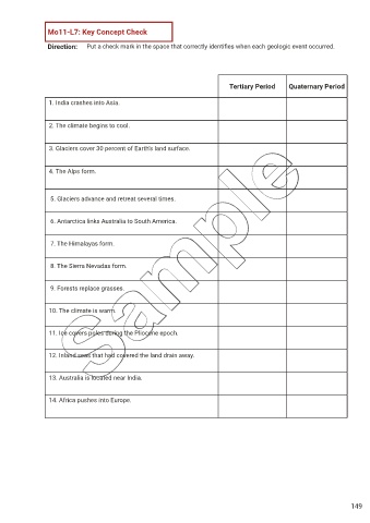 Direction: Put a check mark in the space that correctly identif es when each geologic event occurred.