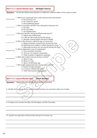 Mo11-L7: Lesson Review Quiz (Short Answer)
