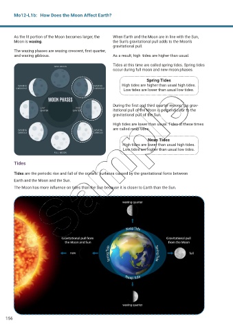 The Moon has more inf uence on tides than the Sun because it is closer to Earth than the Sun.