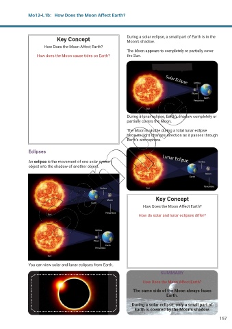 Key Concept During a solar eclipse, a small part of Earth is in the