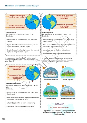 • there are about 12 hours of daylight and 12 hours June Solstice September Equinox