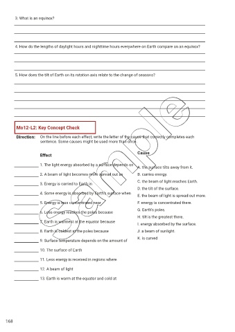 8. Earth is coldest at the poles because J. a beam of sunlight.