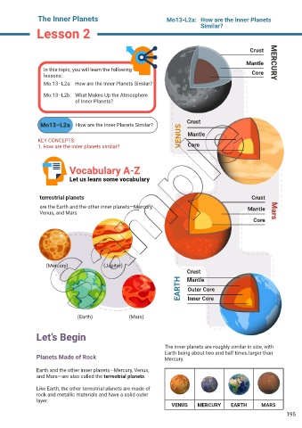 The Inner Planets Mo13-L2a: How are the Inner Planets