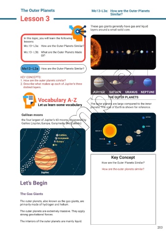 The Outer Planets Mo13-L3a: How are the Outer Planets