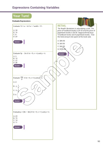 Evaluate 12 + a – b if a = 7 and b = 11. RETAIL