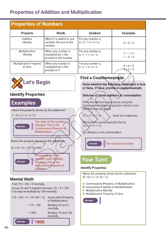 Addition. Identify Properties