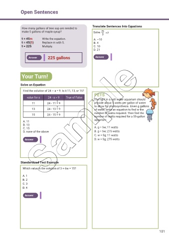 value for a 24 - a = 9 True of False The light in a salt water aquarium should