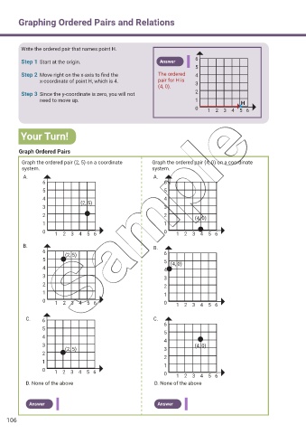 Step 2 Move right on the x-axis to f nd the The ordered 4