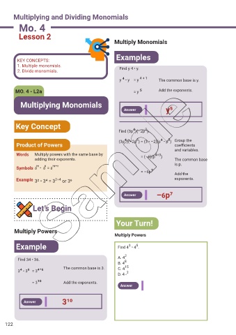 (3p4)(–2p ) = (3 • –2)(p4 • p ) Group the