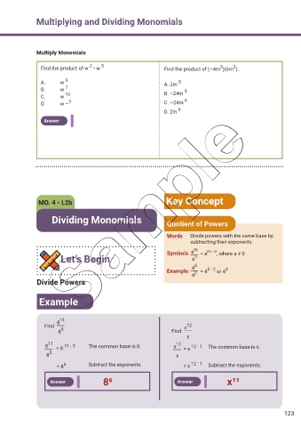 Dividing Monomials Quotient of Powers