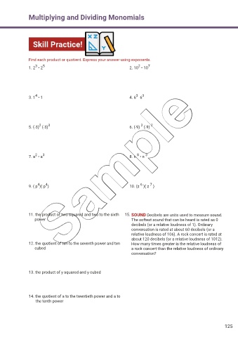 11. the product of two squared and two to the sixth 15. SOUND Decibels are units used to measure sound.