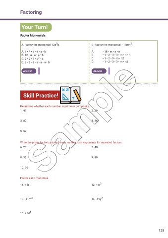 A. Factor the monomial 12a b. B. Factor the monomial –18mn .
