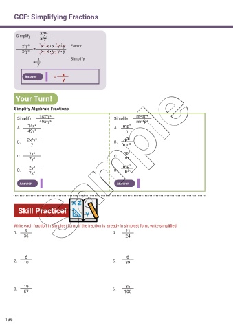 Write each fraction in simplest form. If the fraction is already in simplest form, write simplif ed.