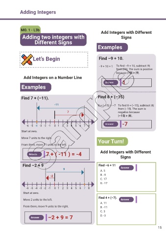 Let’s Begin Find –9 + 10.