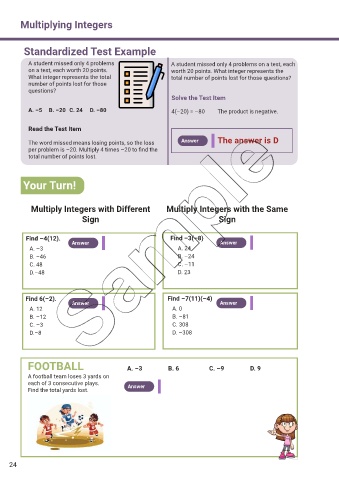 A. –5 B. –20 C. 24 D. –80 4(–20) = –80 The product is negative.