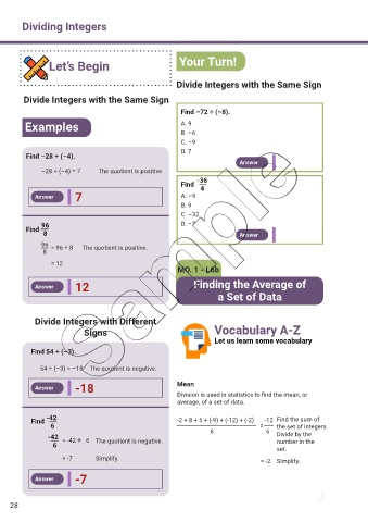 Find –28 ÷ (–4).