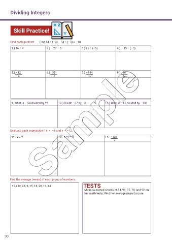 12. x ÷ 2 13. x ÷ (–4) 14. –136