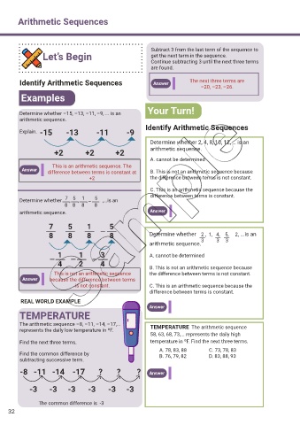 The arithmetic sequence –8, –11, –14, –17,… TEMPERATURE The arithmetic sequence