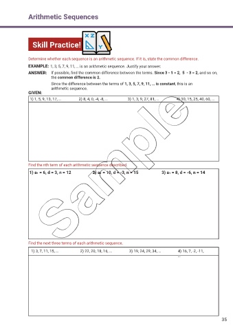 ANSWER: If possible, f nd the common difference between the terms. Since 3 - 1 = 2, 5 - 3 = 2, and so on,