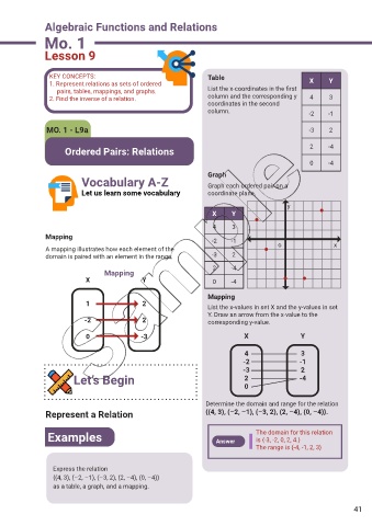 pairs, tables, mappings, and graphs. List the x-coordinates in the f rst