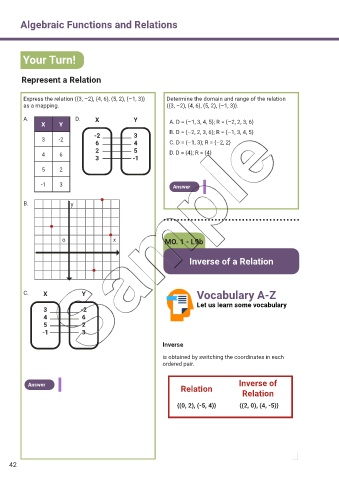 Express the relation {(3, –2), (4, 6), (5, 2), (–1, 3)} Determine the domain and range of the relation