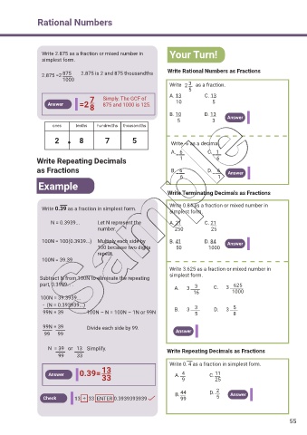 2.875 =2 875 2.875 is 2 and 875 thousandths Write Rational Numbers as Fractions