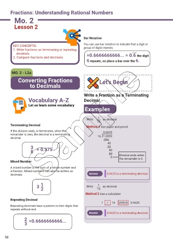 2. Compare fractions and decimals. =0.6666666666... = 0.6 the digit