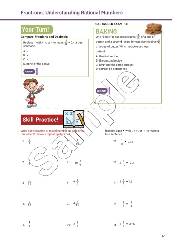 Compare Fractions and Decimals One recipe for cookies requires of a cup of