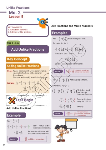 Words To add fractions with unlike denominators, Answer = 16 or 8 Compare to the estimate.