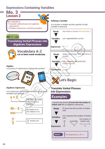 1.Translate verbal phrases into algebraic is to choose a variable and the quantity for that