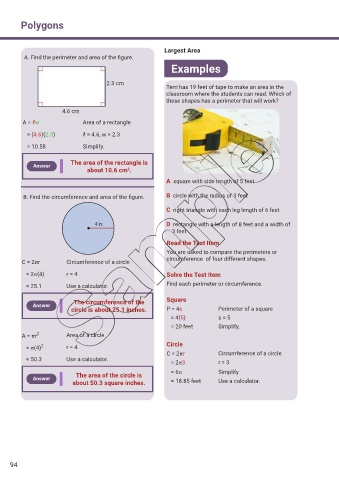 B. Find the circumference and area of the f gure. B circle with the radius of 3 feet